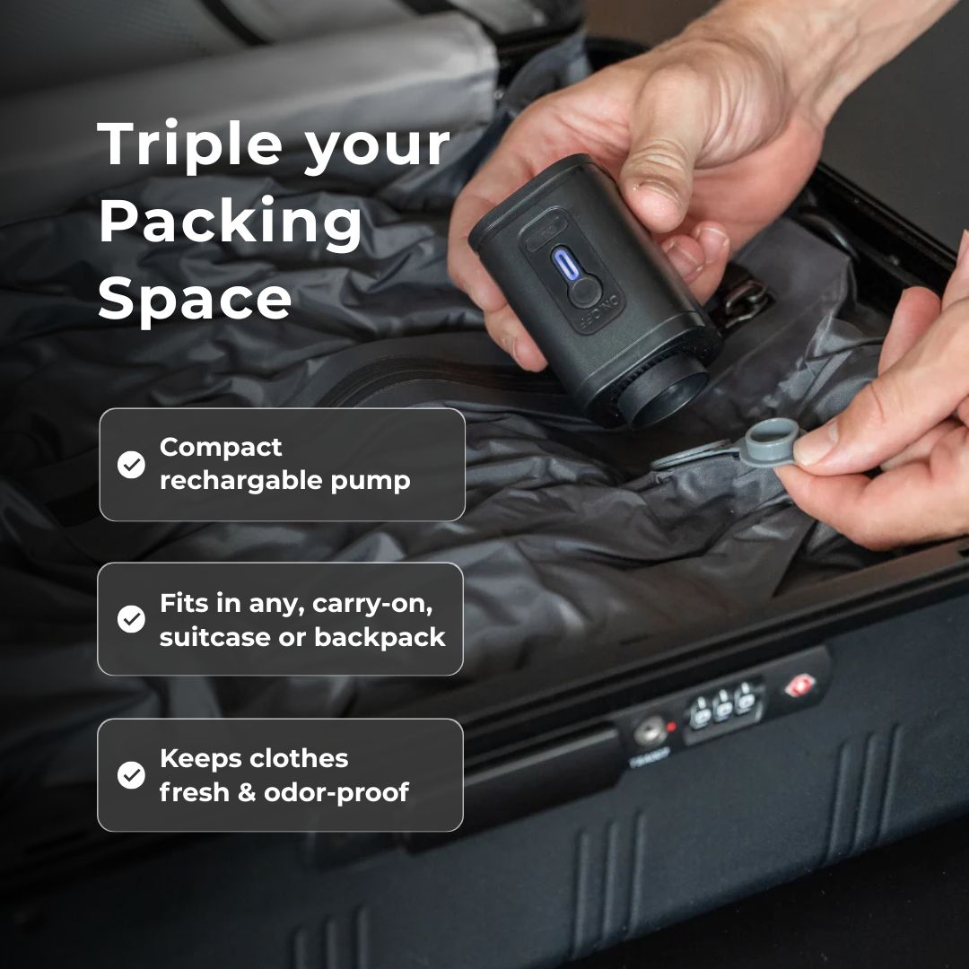 Never worry about overpacking again. Compress your clothes, keep them fresh, and leave nothing behind.